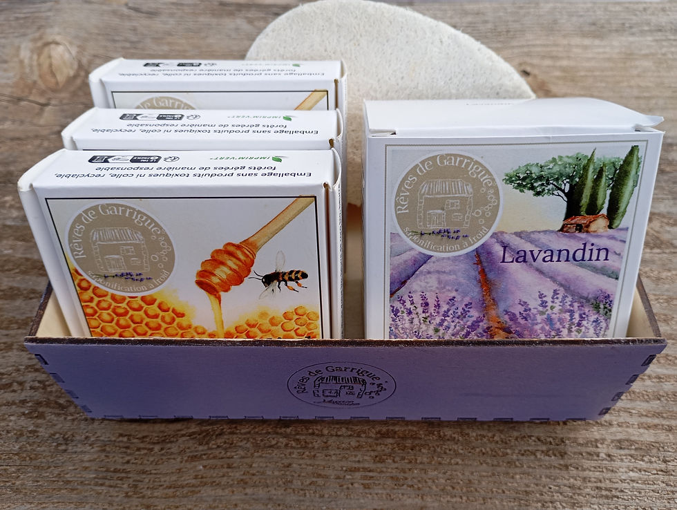 La glycérine est naturellement présente, les savons sont naturellement surgras; une partie des graisses n’est pas transformée et les savons sont doux pour la peau.